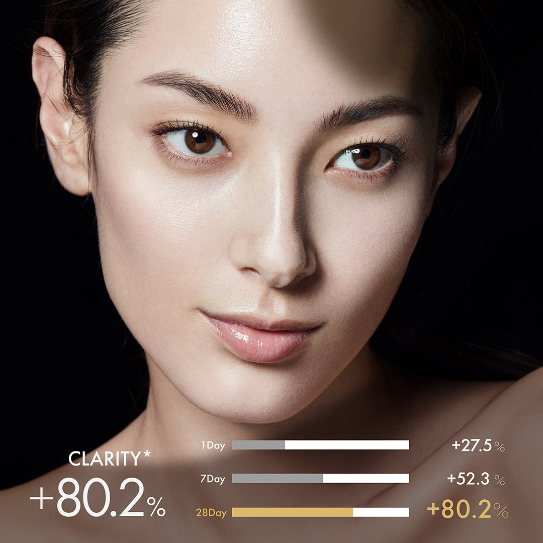 Next-generation serum with firm, transparent, and diamond-like texture allows the effective ingredients including Flavonoid 228KTM and real diamonds to absorb deep and stay in the skin's barrier for more than 4 hours4 after absorption, providing a lasting effect to enhance the look of your skin.